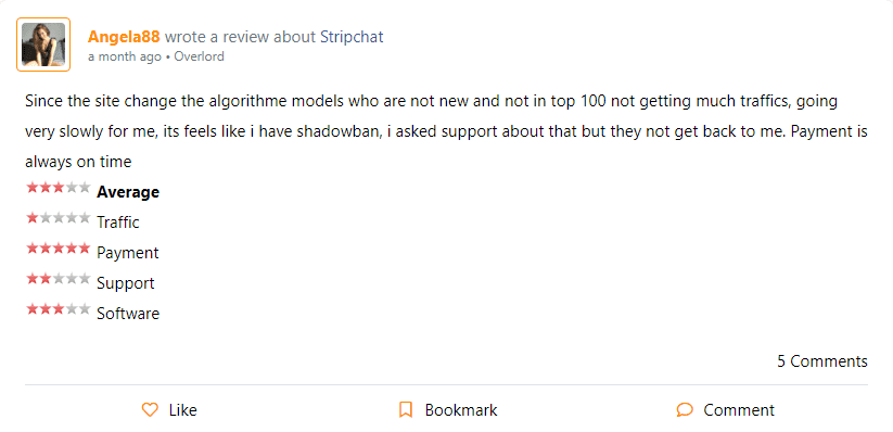 There are also negative comments where models complain about low traffic and poor technical support: