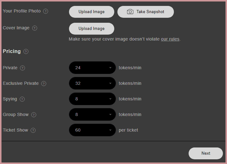 On the same page, you will see buttons to add an avatar and a background. Choose attractive photos, but not too explicit (better in clothes). Prices for communication can be left by default, if you do not know about it yet (they are average):