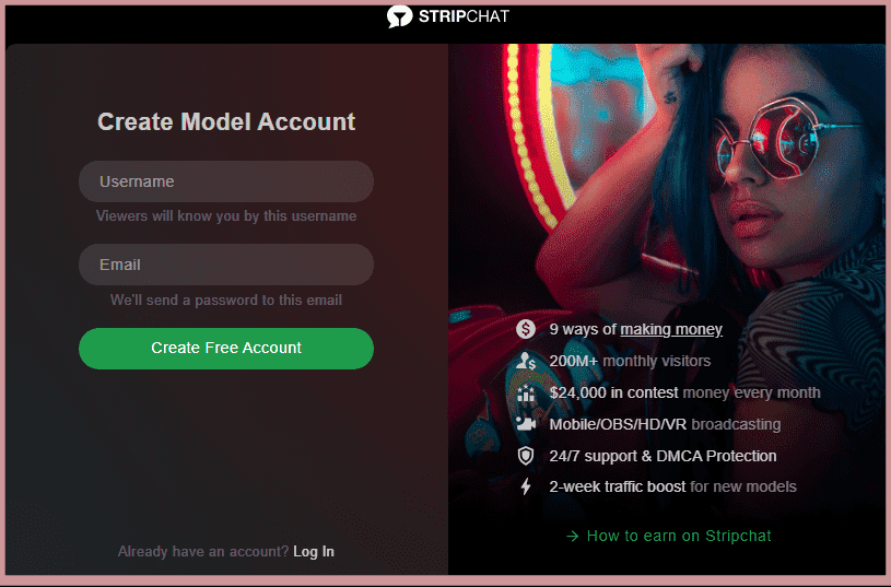 Model login to Stripchat and personal account