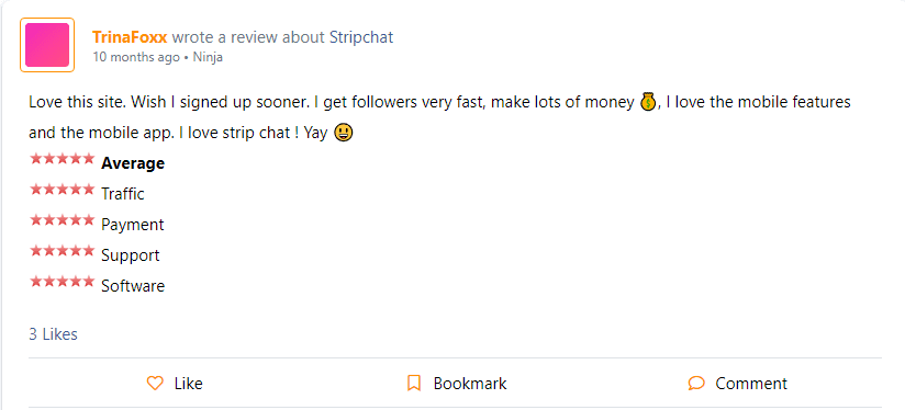 Stripchat video chat has quite many positive reviews. Webcam models note good technical support, as well as a fairly solvent and loyal audience. Here are the comments that we managed to find: